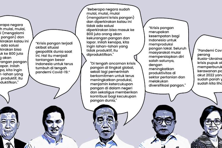"Beberapa negara sudah mulai, mulai, mulai (mengalami krisis pangan) dan diperkirakan kalau ini tidak ada solusi diperkirakan bisa masuk ke 800 juta orang akan kekurangan pangan dan lapar. Inilah kenapa, kita ingin lahan-lahan yang tidak produktif, itu diproduktifkan."