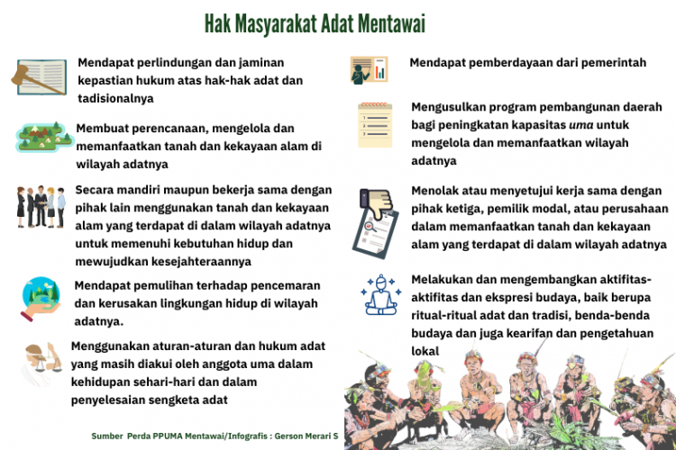 Penetapan Perda PPUMA merupakan jaminan hukum terhadap hak-hak masyarakat adat di Kepulauan Mentawai. Namun pengakuan hutan adat dari pemerintah pusat yang belum juga dikeluarkan, memberikan celah