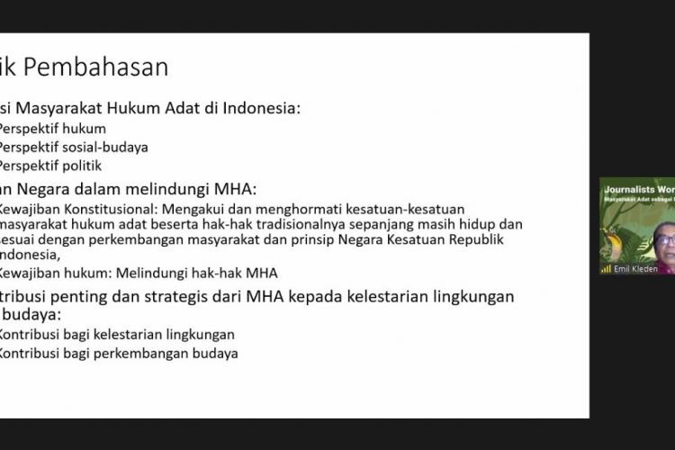 Emil Kleden dalam paparannya menyatakan, aspek hukum dalam pengakuan masyarakat adat tak serta merta memberi jaminan pada keberlangsungan kehidupan dan hak-hak komunitas yang mendiami wilayah hukum adat baik dari sisi politik, ekonomi, sosial budaya, dan kesehatan.